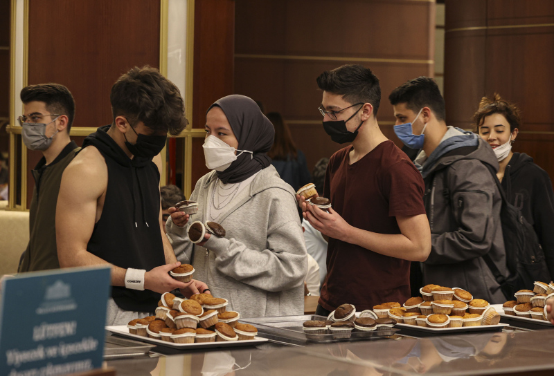 Gece saatlerinde de yoğun ilgi gören kütüphanede çalışanlara ücretsiz ikramlarda bulunuluyor.