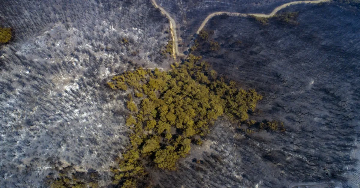 İzmir'de yanan ormanlık alanlar havadan görüntülendi