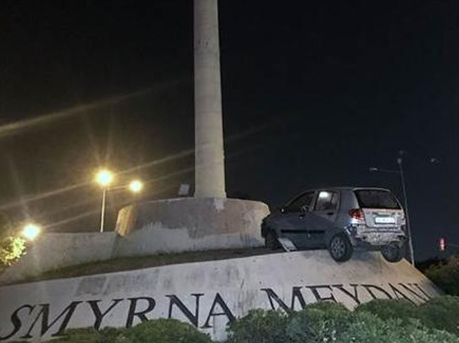 Öte yandan, kazayı gören ve şaşkınlığını gizleyemeyen vatandaşlar, cep telefonlarının kameralarıyla Smyrna Anıtı'na çıkmış olan otomobilin fotoğraflarını çekerken, Semanur Ayan'ın yakınları fotoğraf çekenlere tepki gösterdi.
