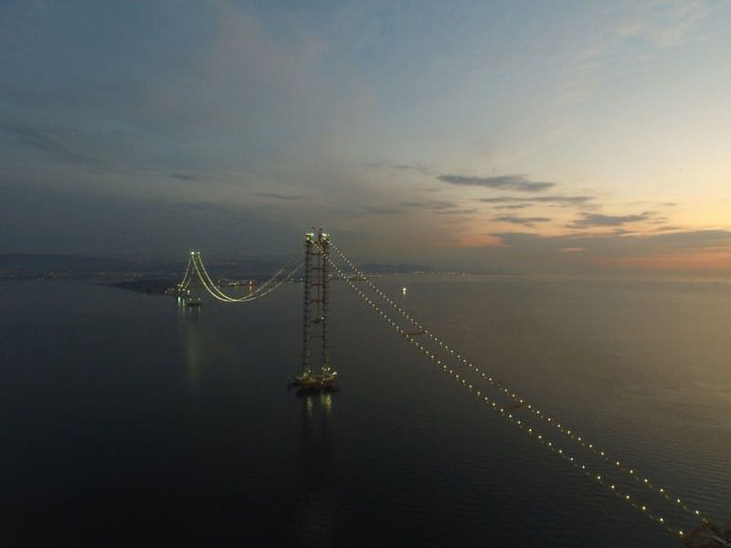 İki yaka arasında 330 bin metre ince kablodan oluşacak ana taşıyıcı kablonun yapımına geçilirken, köprünün ışıklandırılmasıyla İzmit körfezi inci gerdanlığına kavuştu.