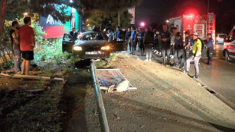 İstanbul Kadıköy'de bulvar üzerinde ilerleyen otomobil yoldan çıkarak elektrik direğine çarptı.