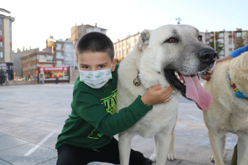 Sivas'ta Kongre Müzesi önünde kangalları gören çocuklar onları sevip okşadı. Doğada Kurtların korkulu rüyası ve en acımasız düşmanları olan kangalların çocuklara karşı ne kadar merhametli oldukları gözler önüne serildi.