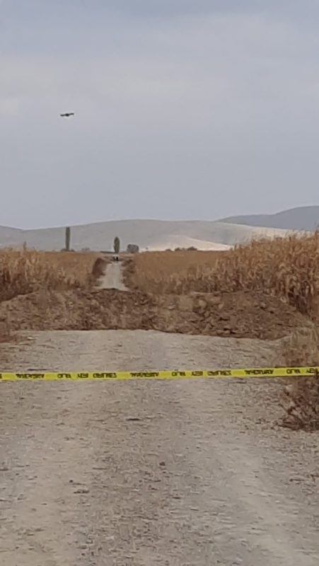 Bölgeye giden görevliler, yarıklarda ve çevre tarlalarda havadan drone ile incelemelerde bulundu.