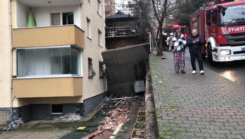 Ayrıca istinat duvarı çöktüğü sırada yan tarafta bulunan binaya çarparak hasara neden oldu.