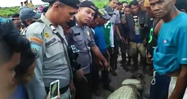 Nehrin kıyısında uzanan bir timsahın yanında insan bedenine ait parçalar görünce, çiftçiyi timsahın öldürdüğünden şüphelendiler. Köylüler timsahı yakalayıp ağzını bağladıktan sonra sürükleyerek köye getirdi. Timsahı öldürdükten sonra karnını yaran köylüler çiftçi Wartoyo'nun cesedi ile karşılaştı.
