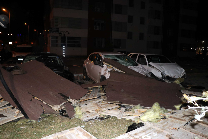Çatılardan düşen parçalar ve ağaçlar nedeniyle çok sayıda otomobilde büyük çapta maddi hasar oluştu.
