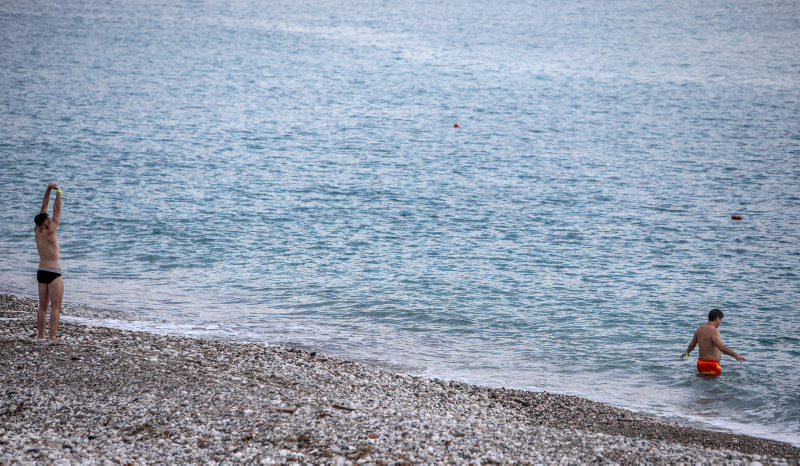 Hava sıcaklığının 17, deniz suyunun ise 19 derece olduğu turizm kenti Antalya'da, Konyaaltı Sahili turistlere ev sahipliği yaptı.