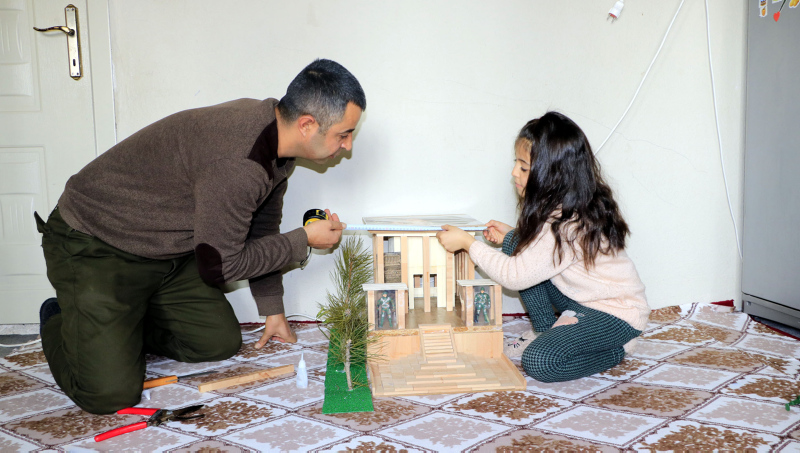 Yüksekova ilçesi Yeni Mahalle'de inşaat işçisi Mehmet Şerif Karahan, geçen yıl Anıtkabir'e götüremediği kızı Hira için sıcaklığın eksi 20 derecelere kadar düştüğü havada 10 gün çalışarak kardan Anıtkabir yaptı.