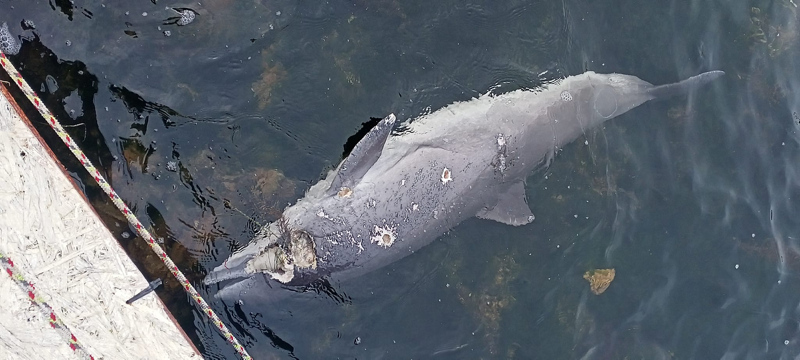 Kocaeli'nin Darıca ilçesi Bayramoğlu Mahallesi Balyanoz Koyu sahilinde ölü yunus balığı kıyıya vurdu.