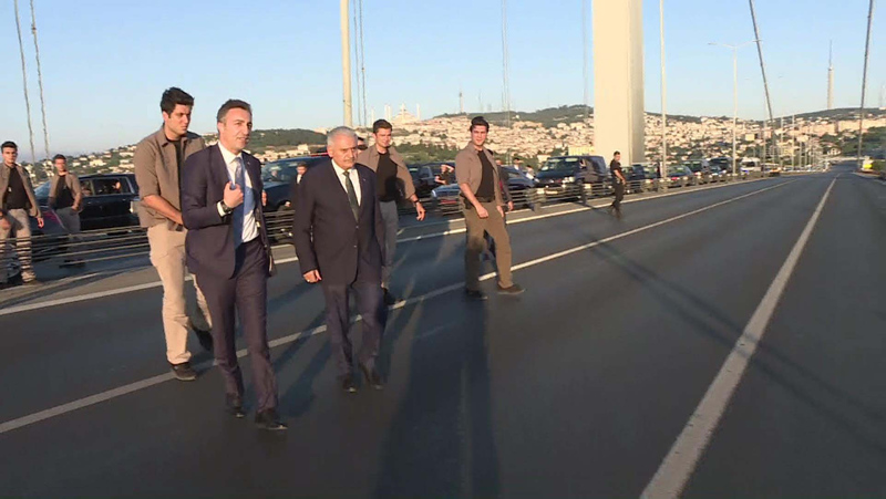 Karşısında Başbakan Yıldırım'ı gören T.T, intihardan vazgeçti. Yıldırım, korumalarının yardımıyla korkuluklardan alınan vatandaşı teselli etmeye çalışarak su içirdi.Yıldırım, "Hadi gel beraber gidelim" diyerek elinden tuttuğu T.T'yi makam aracına götürdü ve yanına oturttu.