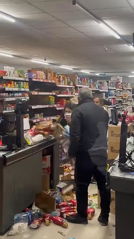 Markette yaşananlar çevredekilerin cep telefonu kameralarına yansıdı. Görüntülerde market içinde bulunan şüphelilerin raflardaki ürünleri hem dağıttığı hem de içeride bulunan müşterilere fırlattığı görülüyor.