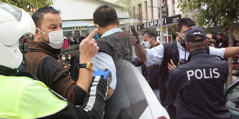 Özdemir'in şoförü olduğu öğrenilen bir şahıs, araçtan inerek elindeki cep telefonuyla gazetecilerin fotoğraflarını çekip, hakaretler yağdırmaya ve tehditler savurmaya başladı.