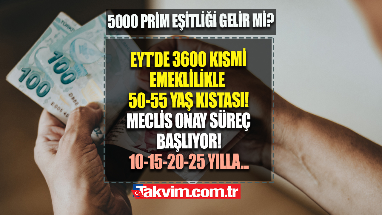 Bilindiği üzere EYT ile ilgili yasal düzenlemenin son aşaması Meclis. 21 Şubat'ta EYT, vergi ve sigorta aflarının TBMM'de masaya yatırılması bekleniyor. Onay ve red için Meclis'te oylama yapılacak. Bu kapsamda emeklilik bekleyen vatandaşlar, EYT yasası hakkında bazı detayları merak edip araştırıyor. 50-55 yaş kısmi emeklilik, prim eşitliği, staj sigortası hakkında değişiklik olup olmayacağı da gündemde yer alıyor. Peki, EYT ne zaman Meclis'e gelecek? EYT başvuruları ne zaman başlıyor? Kısmi emeklilik şartları geçerli olacak mı? İşte detaylar...