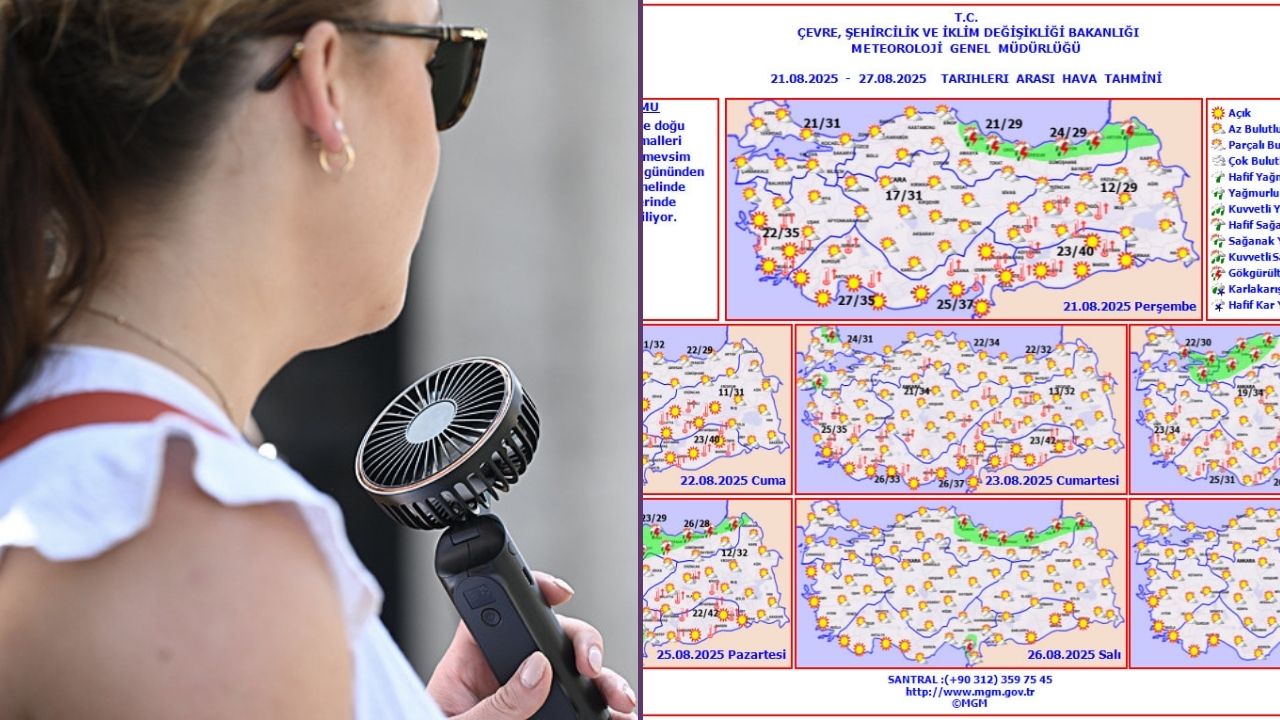 Pazar: Marmara'da sıcaklıklar etkisini kaybedecek, Ege'de 4-5 derecelik bir düşüş görülecek. İç Anadolu'nun doğusunda (Kırşehir, Nevşehir, Yozgat) sıcaklıklar 35 derece civarında olurken, Güneydoğu Anadolu'da 45 dereceye yaklaşacak.