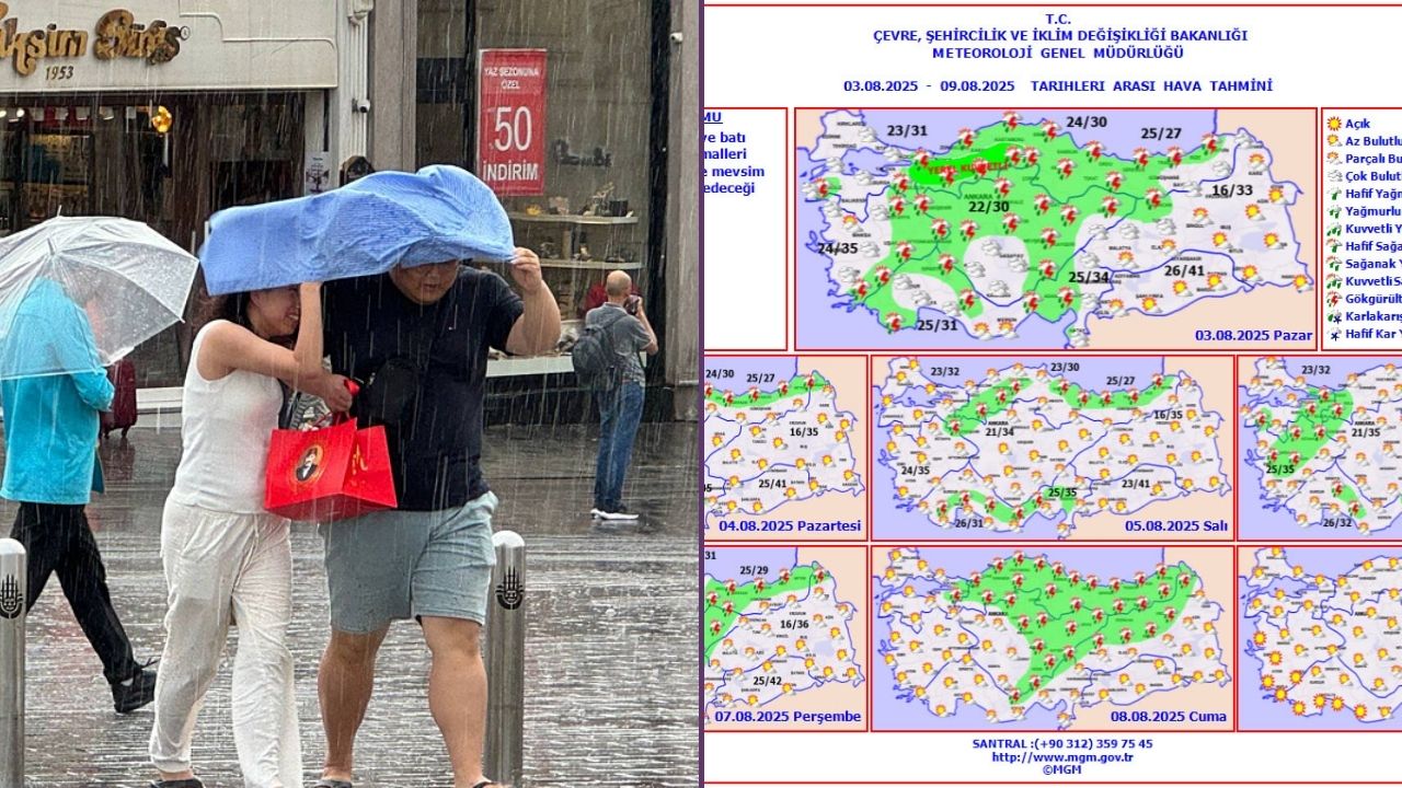 MGM'nin yayınladığı günlük tahmin raporuna göre, bugün öğle saatlerinden itibaren yurdun iç ve batı kesimlerinde gök gürültülü sağanak yağışlar görülecek. Balıkesir, Sakarya, Afyonkarahisar, Uşak, Denizli, Muğla, Adana, Antalya, Ankara, Eskişehir, Konya, Nevşehir, Kırşehir, Kırıkkale, Bolu, Düzce, Sinop, Zonguldak, Amasya, Tokat, Artvin, Samsun, Trabzon, Rize, Giresun, Kocaeli, Bilecik, Kütahya, Karabük ve Çankırı bu yağışların etkisi altında olacak.