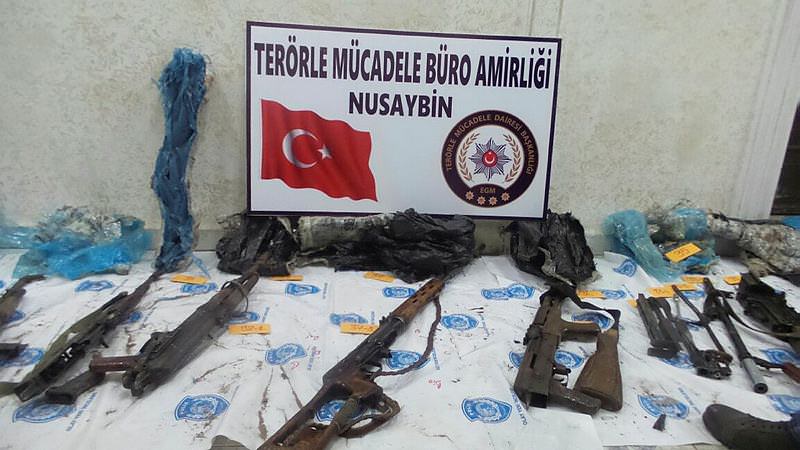Mardin Nusaybin ilçesinde güvenlik güçleri tarafından mezarlıkta yapılan aramada terör örgütü PKK'ya ait çok sayıda mühimmat ele geçirildi.