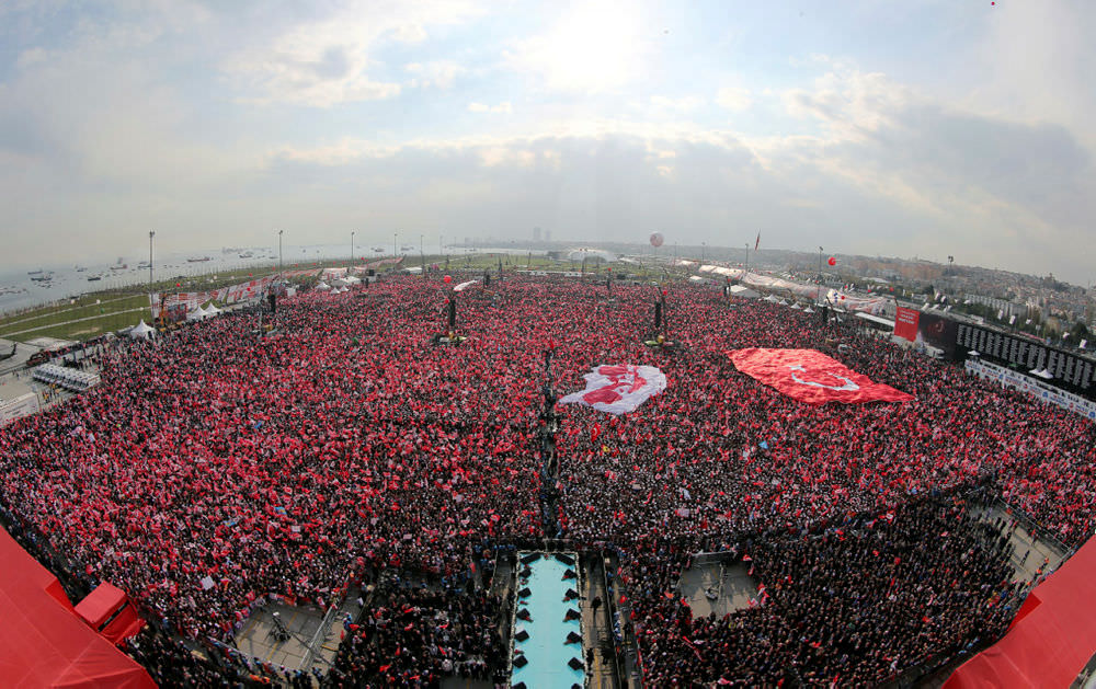 Alan, ellerinde Türk bayrakları ve "evet" yazılı flamalar taşıyan vatandaşlarla dolmaya başladı.