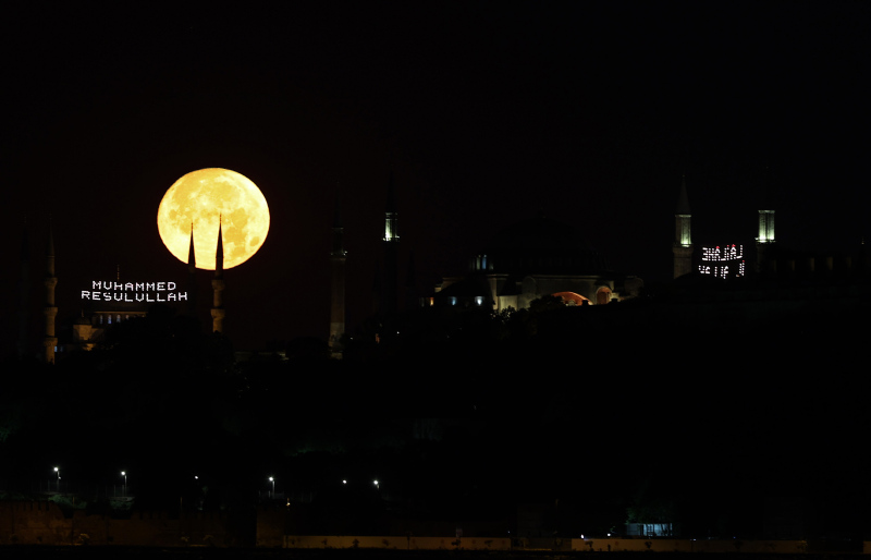 Ayın dünyaya en yakın konumda olduğu, normalden daha büyük ve parlak gözlemlendiği süper dolunay görülmeye değer manzaralar ortaya çıkardı.