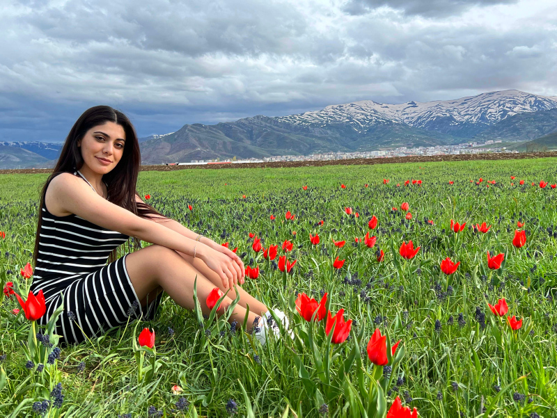 Laleleri görebilmek için Azerbay'dan Muş'a gelen Narmin Aliyeva ise "Kıpkırmızı ova ve karlı dağlar arasında bol bol fotoğraf da çektirerek bu anı ölümsüzleştirdik.