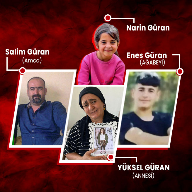 Narin'in akrabası İsa ve Şeyma Kaya da dün sahte bilgi ve ihbarlarla olayın çözümünü manipüle etmeye çalıştıkları iddiasıyla gözaltına alındı.