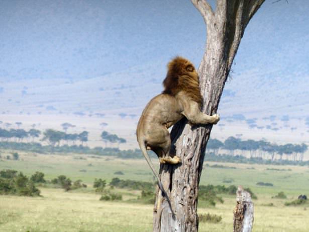 Bir fırsat bulup ağaçtan inen Aslan kral arkasına bakman kaçıyor...