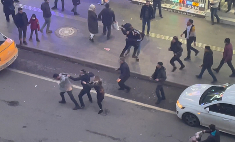 Her iki guruptan kişilerin darbedildiği kavga, esnaf ve vatandaşların araya girmesiyle sona erdi.