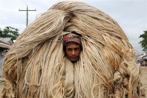 Hindistan ve Bangladeş'te lifleri ip ve çuval yapımında kullanılan jüt bitkisini toplayan işçiler.