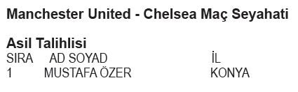 MANCHESTER UNITED - CHELSEA MAÇ SEYAHATİ KAZANAN YEDEK TALİHLİLER