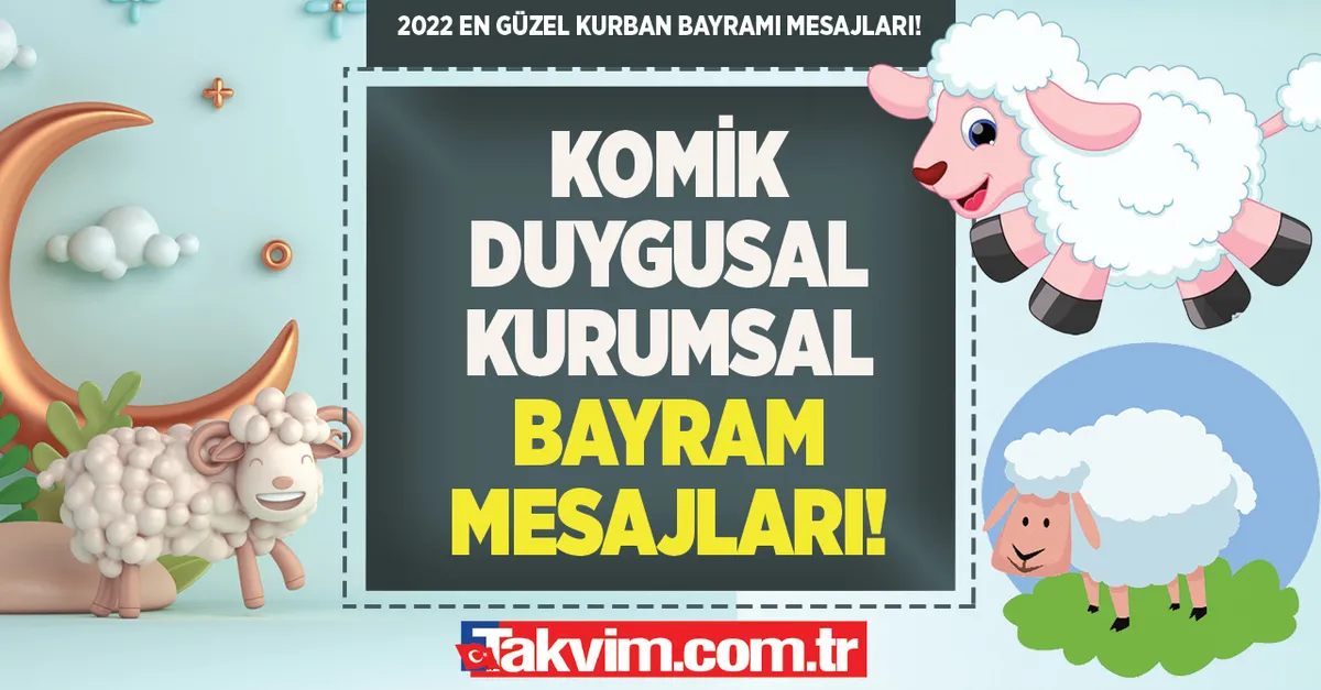 2022 Kurban Bayramı kutlama sözlerini sizler için bir araya getirdik. Bu özel ve anlamlı günde eşinize dostunuza, sevdiklerinize yollayacağınız güncel bayram mesajlarına mutlaka göz atın. Kurban Bayramı Cumartesi ve Salı günlerinde arasında kutlanacak, sevdiklerinize göndermeniz için en güzel bayram mesajlarını takvim.com.tr sitesi sizin için hazırladı. Kurban Bayramı için en güzel bayram mesajlarını sizin için biraraya getirdik, resimli ve kısa bayram mesajlarını sms'lerle sevdiklerinize atabilirsiniz. İşte 🐑RESİMLİ KURBAN BAYRAMI MESAJLARI - SÖZLERİ! Komik, kurumsal, ciddi, yazılı, yazısız GİFli, hareketli, dualı bayram mesajları!
