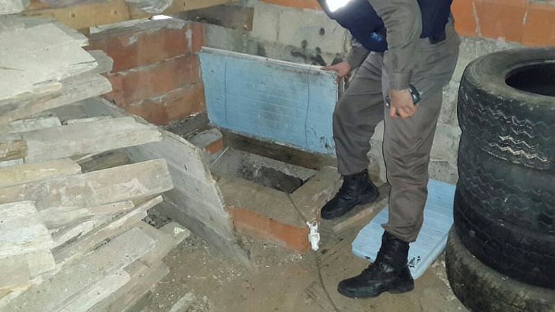 Evin bir odasının tabanında tespit edilen kapağın açılması sonucu merdivenle inilen ve alarm sistemi kurulu 7 metrekarelik bir sığınak tespit edildi.