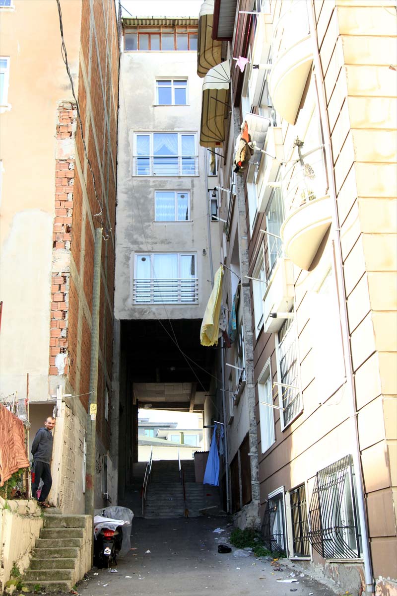 Apartman sakinlerinden Necla Batur, 13 yıl önce sokaklarının çıkmaz olması nedeniyle çözüm aradıklarını, ve apartmanın altından yol geçirerek bu durumu çözdüklerini söyledi.