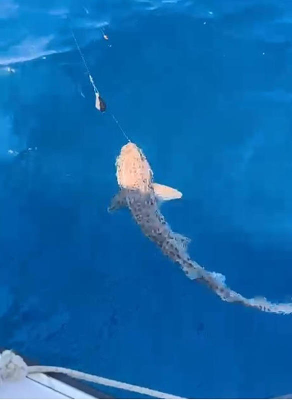 Yakalanıp, tekneye çekilen balığın benekli köpek balığı olduğunu fark edildi. Yaklaşık 1,5 metre boyunda, 25 kilo ağırlığındaki balık, yeniden denize bırakıldı.