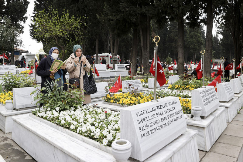Aileler şehitlerin mezarı başlarında dua edip Kur'an-ı Kerim okudu.