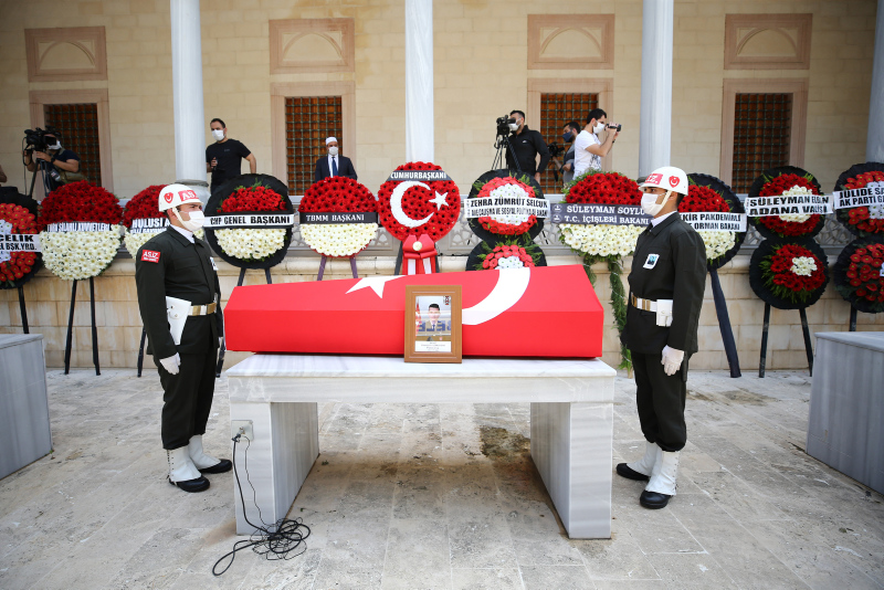 Şehit Ramazan Günaydın'ın kızı Elçin Günaydın ise babasının cenazesine asker kepi takarak katıldı.