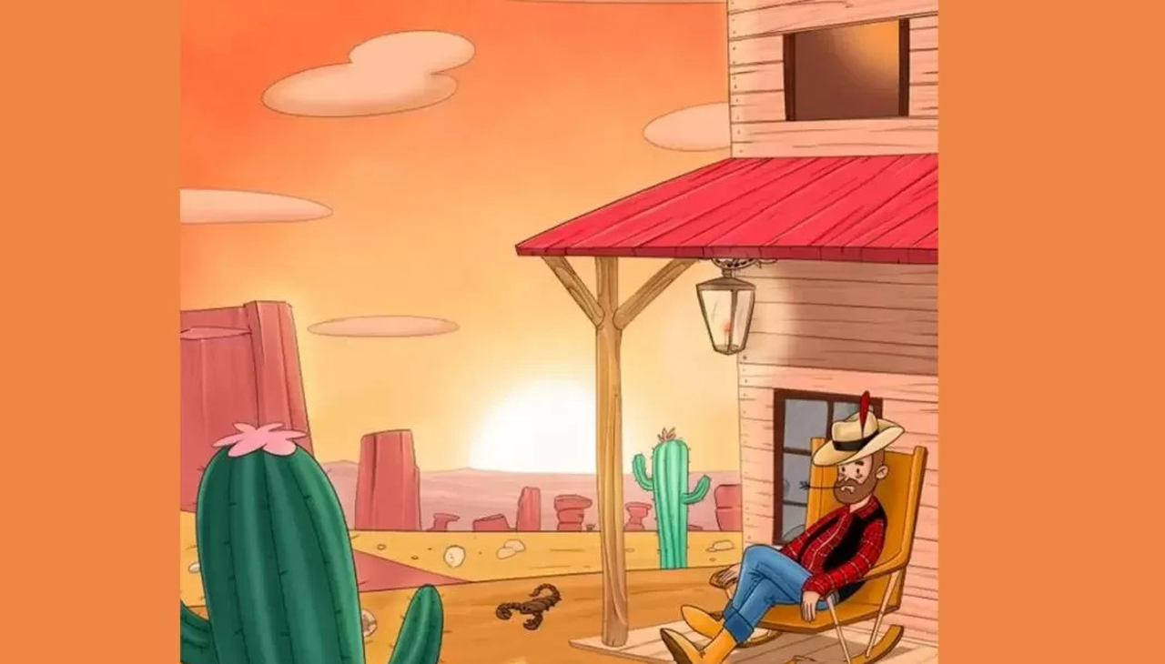 Resimde bir sandalyede dinlenen bir adam olduğu görülüyor. Yanında kaktüsler, dağlar ve diğer hayvanlar gibi çeşitli nesneler var.