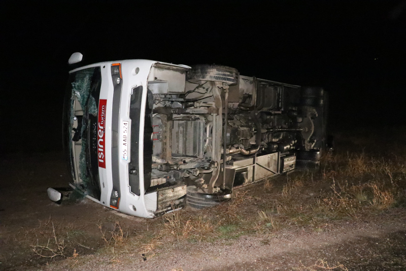 Sivas'ın Kangal ilçesinde sağlıkçıları taşıyan tur midibüsü devrildi.