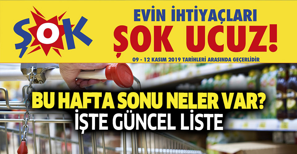 ŞOK marketler hafta sonu indirimleriyle geliyor. Birçok ürünün yer aldığı ŞOK kataloğunda 25 TL ve üzeri alışverişlerde geçerli Lipton Altın Harman ve Blendax Şampuan dikkat çekiyor. Peki, ŞOK'ta bu hafta sonu hangi ürünler olacak? Sizler için güncel kataloğu sayfamızda derledik. İşte 9-12 Kasım 2019 ŞOK aktüel ürünler kataloğu...