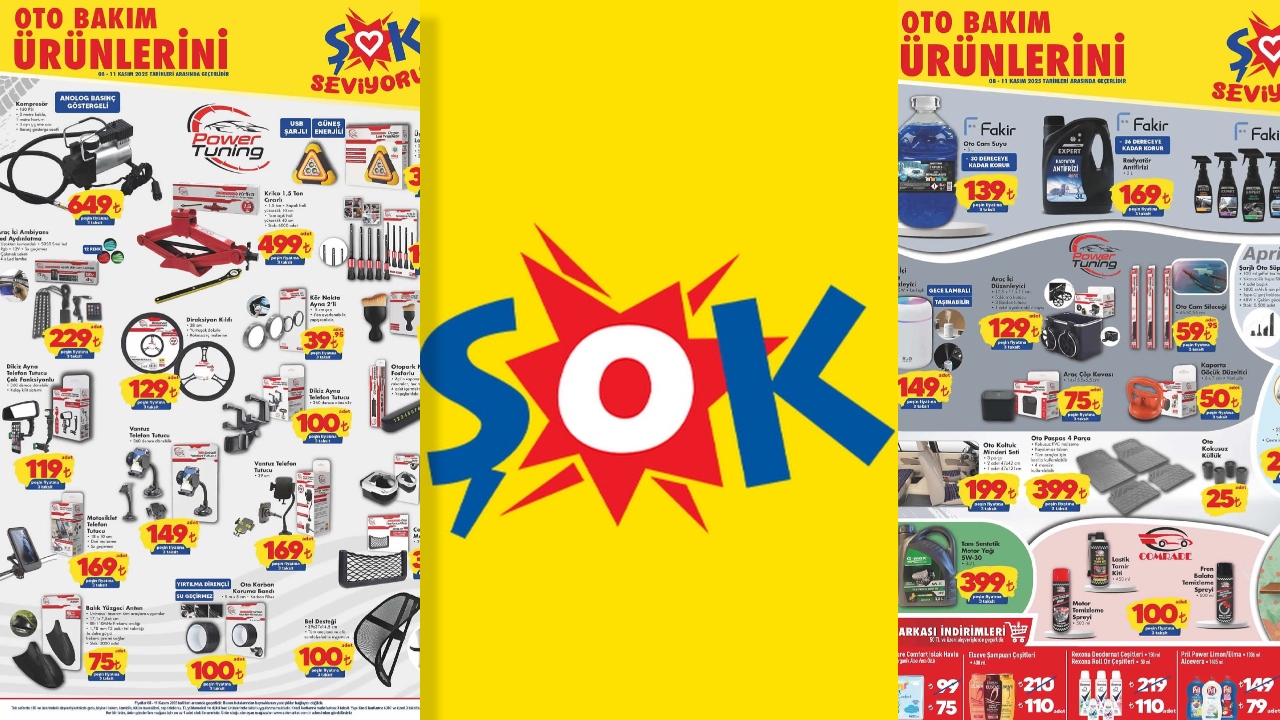 ŞOK'un bu hafta sonu fırsatları yayınlandı. 8-11 Kasım 2025 tarihli aktüel katalogda birbirinden cazip indirimler yer alıyor. Özellikle otomobil aksesuarları ve beyaz eşyalar uygun fiyattan alıcılarını bekliyor.