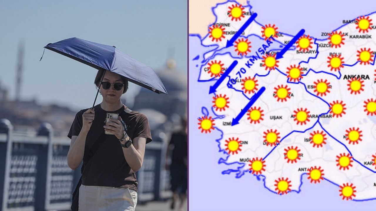 Marmara Bölgesi'nde 34-38 derece bandında seyredecek hava sıcaklığı, Ege'de kıyılarda 38-40 derece, iç kesimlerde ise 35 derece civarında olacak. Kuzey Ege kıyılarında zaman zaman fırtına etkili olabilir.