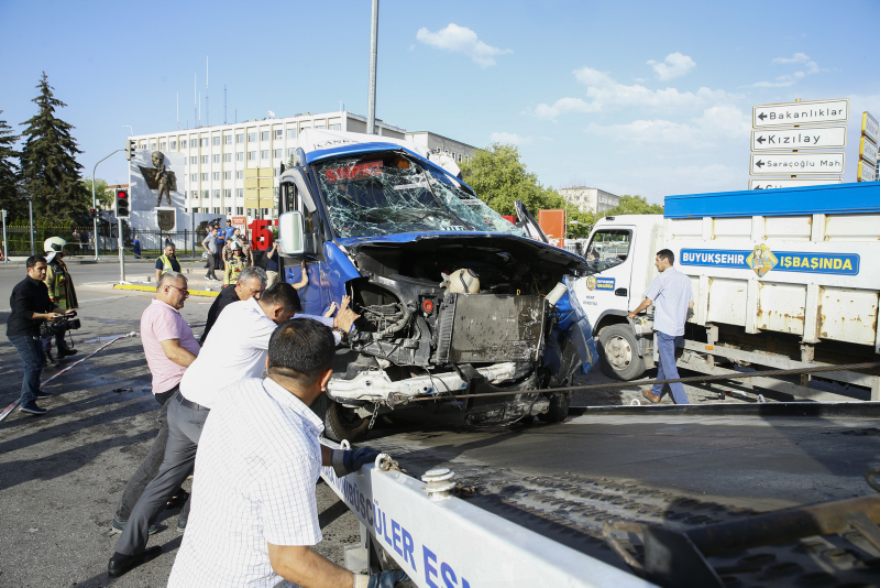 Alınan bilgiye göre, Yukarı Ayrancı-Kızılay seferini yapan ve sürücüsünün adı henüz öğrenilemeyen 06 J 1211 plakalı yolcu minibüsü, Genelkurmay Kavşağında, sürücüsünün kimliği belirlenemeyen 06 CGT 751 plakalı otomobil ile çarpıştı.