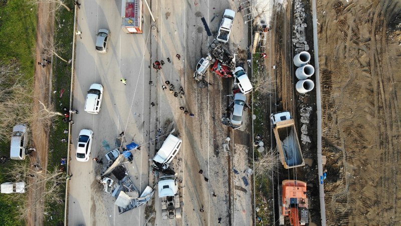 Hızla ilerleyen TIR, kırmızı ışıkta bekleyen 22 araca çarpıp, altına alarak sürükledi. Ortalığın savaş alanına döndüğü kazada, birçok araç demir yığınına döndü.