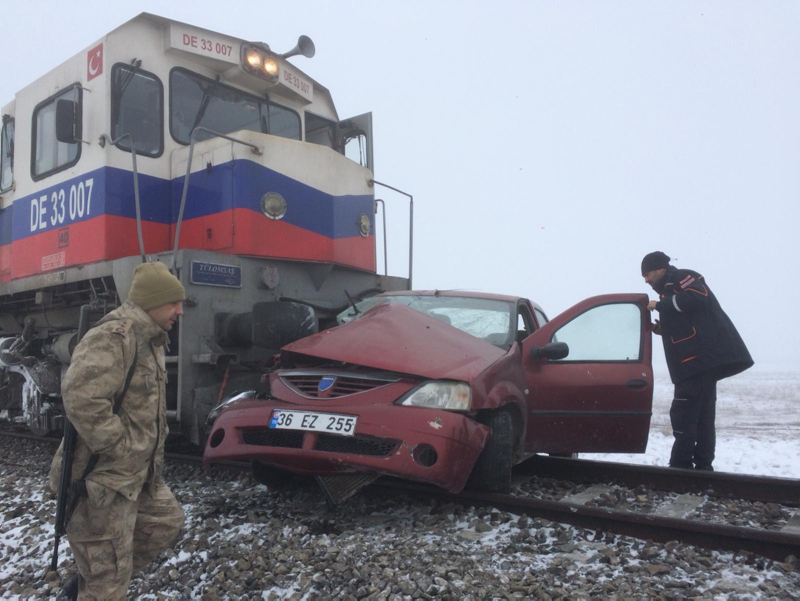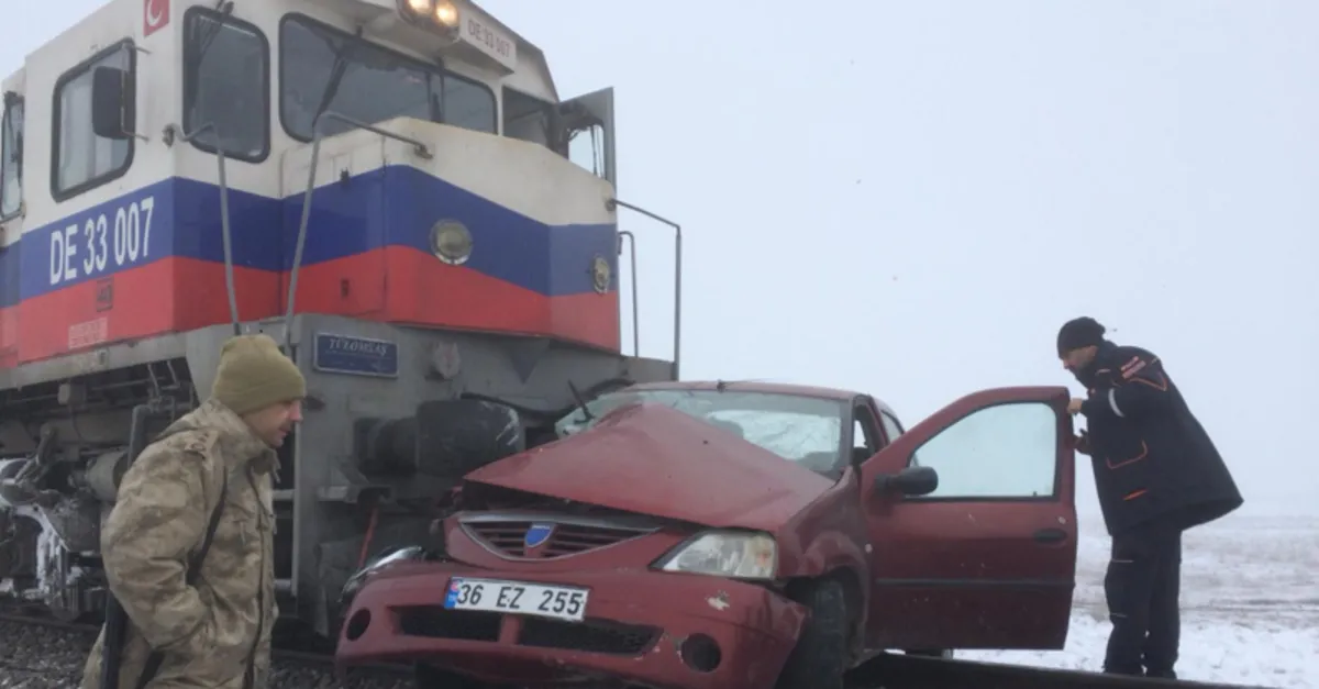 Kars'ın Selim ilçesinde, yük treninin hemzemin geçitte çarptığı otomobildeki 3 kişi yaşamını yitirdi.