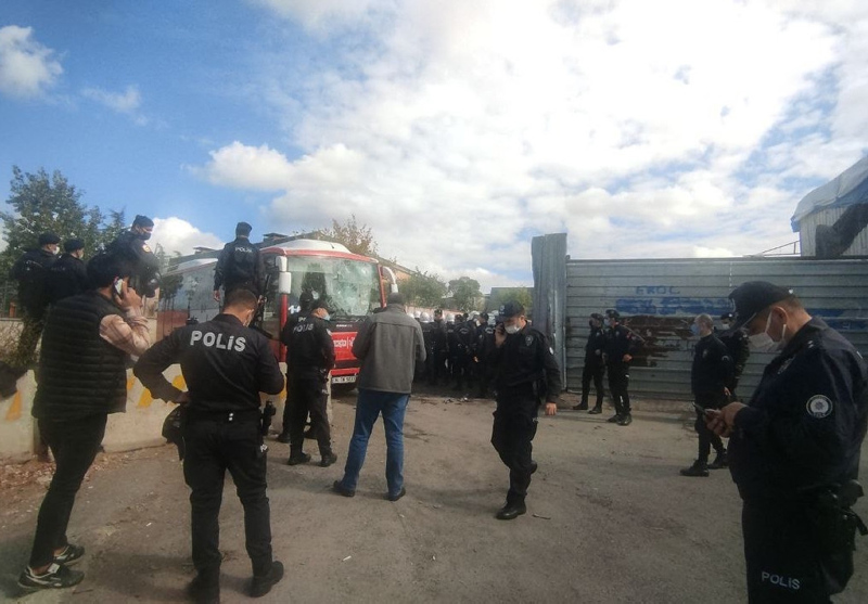 Baskın sırasında kağıt toplayıcıları kağıtların bulunduğu barakaları ateşe verirken polisi taş yağmuruna tuttu.
