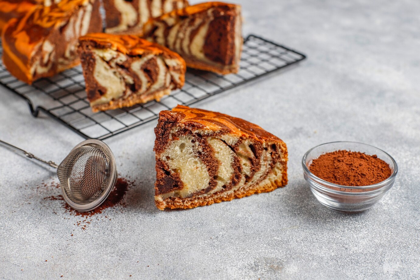 Kek kalıbınızı tereyağı ile yağlayın ve un serpiştirin. Kek harcının yarısını kalıba dökün. Kalan yarısına kakao ekleyerek karıştırın ve üzerine ekleyin.