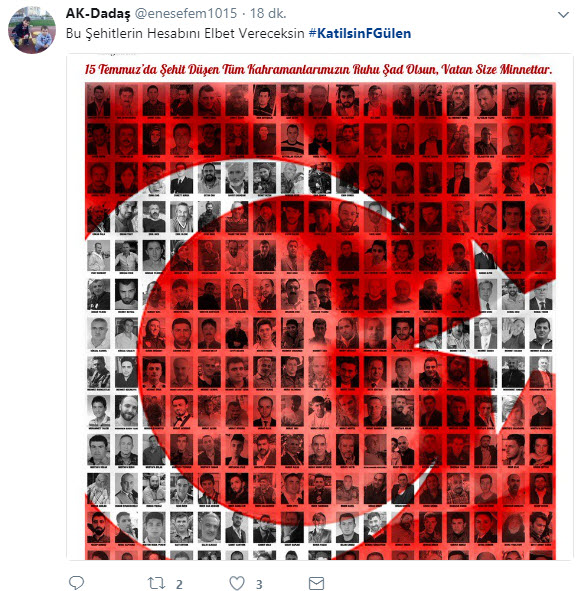 Pensilvanya'daki malikanesinde ABD koruması altında yaşayan teröristbaşı Fetullah Gülen'le ilgili #KatilsinFGülen hashtagiyle sosyal medya kullanıcıları Feto ve arkasındaki güçlere sert tepki gösterdi. İşte o tweetlerden bazıları: