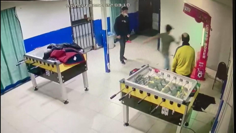 Koşarak makineye doğru koşan Dövdemir, tekme attıktan sonra dengesini kaybedip duvara çarptı.