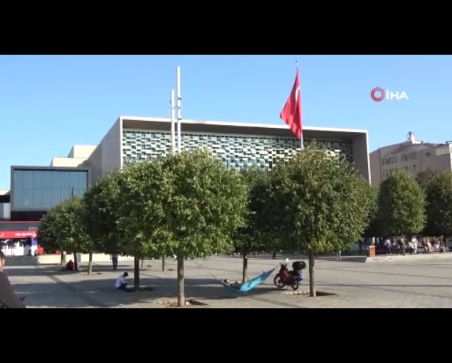 Taksim Meydanı'na hamak kurdu VİDEO
