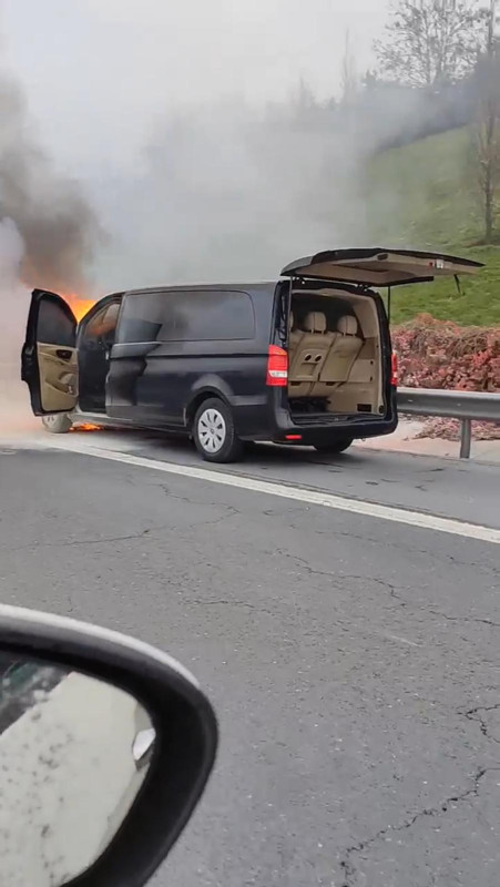 İstanbul'da TEM Otoyolu Seyrantepe mevkiinde seyir halindeki minibüs alev aldı.