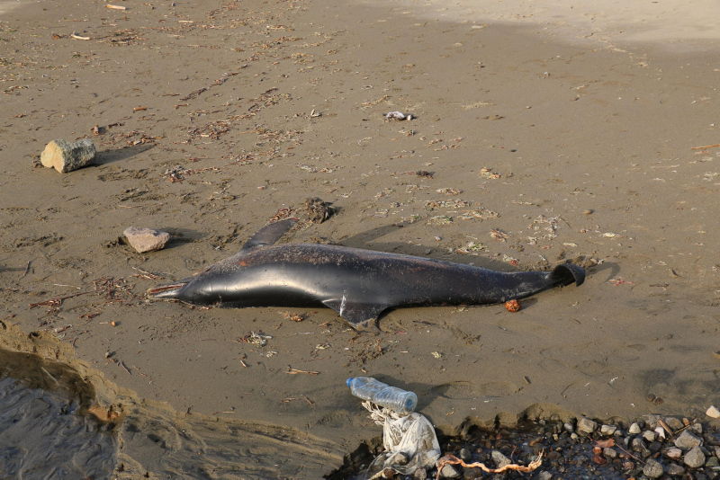 Geçen hafta sahilde kayalık alana 1 ölü yunus daha vurmuştu.