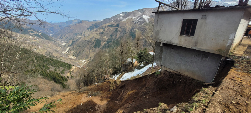 İlçeye bağlı Gülcana Mahallesi'nde kar yağışının ardından toprak zemininde kayma ve yarılmalara bağlı heyelanlar oluştu.